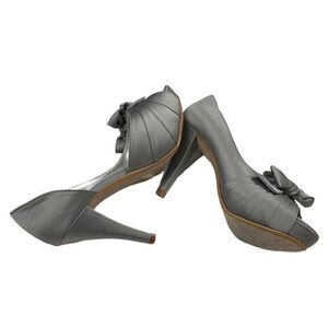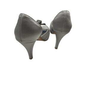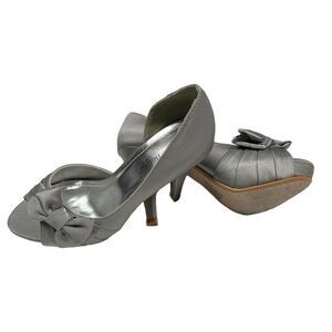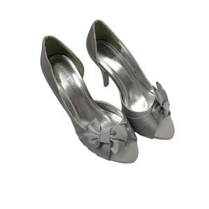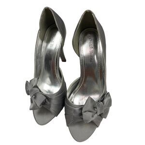 Davids Bridal Maribelle Bow Peep Toe Heel Womens Size 7M Silver Wedding Cocktail