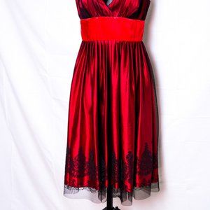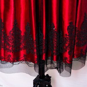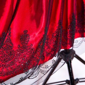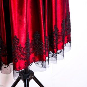 Flexible & soft fabric makes it comfortable to wear all day. Soft Black netting/mesh overlay on top of red. Skirt has a nice flow to it.