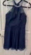 David’s Bridal Navy Blue Chiffon sleeveless dress with Pearl choker Size 12