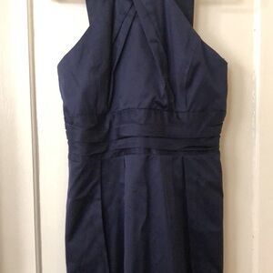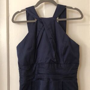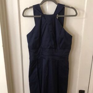 David's Bridal Navy Blue Halter Neck Fit and Flare 100% Cotton Dress Size 14