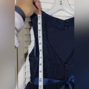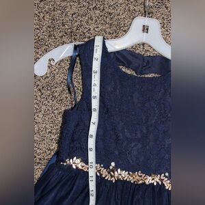 David’s Bridal Navy Blue Kids Dress with Gold Accents Size 8
