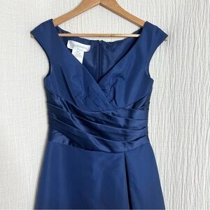 David’s Bridal Navy Blue Ruched Satin Midi Dress size 4