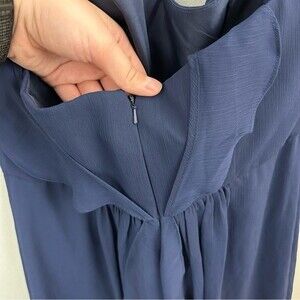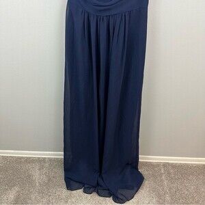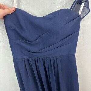 David’s Bridal Navy Long Crinkle Chiffon Bridesmaid Dress NWT Size 6