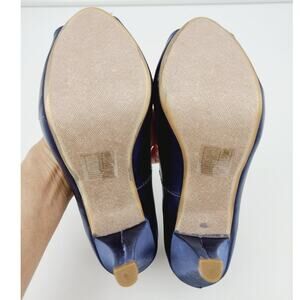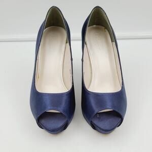 David's Bridal Navy Satin Peep Toe Pump, Size 7 M EUC
