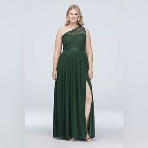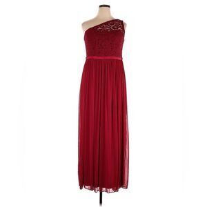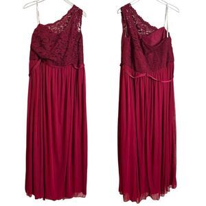David's Bridal One Shoulder Lace Bodice Long Maxi Dress Size 22 Apple Red