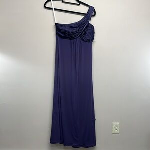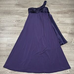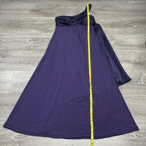 David’s Bridal One Shoulder Long Jersey Dress with Cascade Back Lapis Purple 8