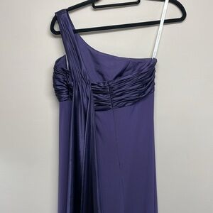 David’s Bridal One Shoulder Long Jersey Dress with Cascade Back Lapis Purple 8