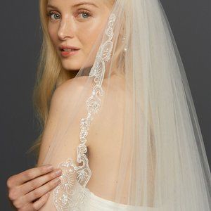 David's Bridal One Tier Cathedral Sequin Embroidered Edge Veil