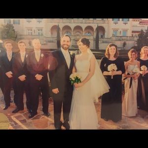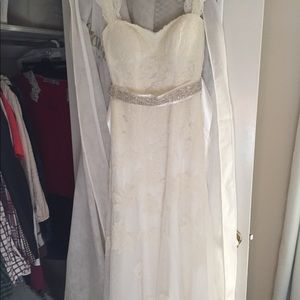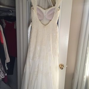Beautiful dress. Worn twice once on my wedding day and for bridal portraits! Size 4. Comes in davids bridal garment bag. Only alterations were having bra cups sewn in the front. I can post more pics on request for those seriously interested!