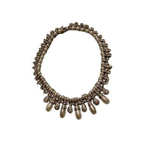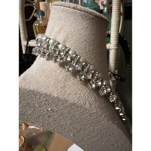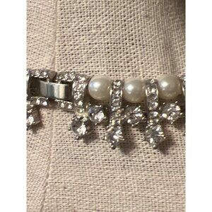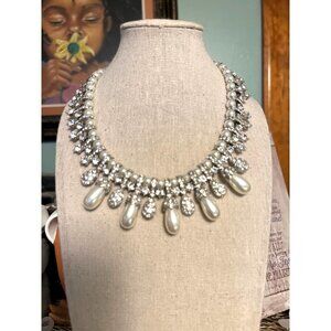 This stunning pearl and rhinestone pave drop necklace is the perfect statement piece to complete your look! Necklace features sparkling pave crystal rhinestones and pearls. PLEASE NOTE: Photos 7 & 9 show a small blemish on pearl. Imported.
