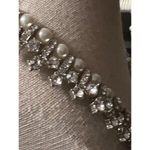 David’s Bridal Pearl and Rhinestone Pave Necklace -- WHITE