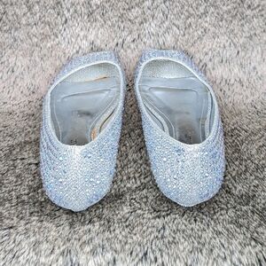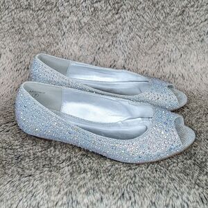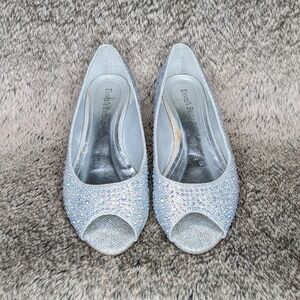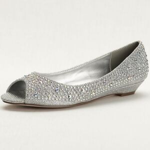 David's Bridal Peep Toe Low Wedge Silver AJUSTIN10 Women's 7