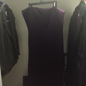 -Very Pretty & in excellent condition (worn once at a wedding). Would be an excellent formal dress for a wedding, formal dance, cruise, pictures, etc. Comes with matching wrap. Plum in color. Size 8. Could stand to be steamed or dry cleaned but has been kept in closet in dress bag. Comes from Smoke Free / Bug Free / Clean Home.