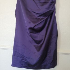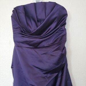 Davids Bridal Purple Short Satin Pleated Bridesmaids Formal Dress Sz 2