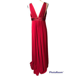 Sleeveless, low back, back zipper with satin on straps and band below bust.