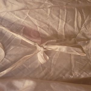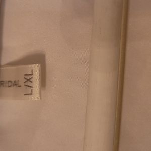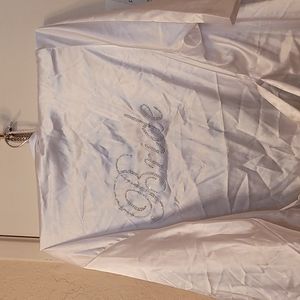 David's Bridal robe. Worn only once for pictures. Has a snag on the back that is shown in the picture above. Rhymstones are all intact. Beautiful and silky. Size is L/XL