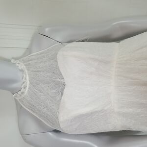 David's Bridal SZ 8 Wedding Dress Ivory High Neck Empire Waist Lace Halter FLAW