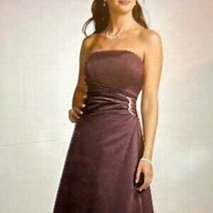 David's Bridal SZ 8 truffle satin strapless formal flare gown bridal formal prom