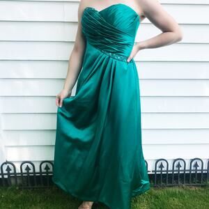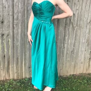 David's Bridal Satin A Line Draped Gown Beaded Neckline Strapless Turquoise