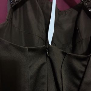 Beautiful deep, black color. Never worn, never altered, NWT. The instructional tag was not attached when we received, but please see the Apple Red listing for those details. The beaded straps are the perfect touch of sparkle and the A-line silhouette is very flattering. The back has a mini train, which is that extra gathering showing the the back of the dress, otherwise the dress lays totally flat. Please let me know if you need any measurements!