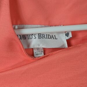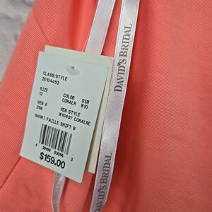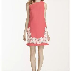 David's Bridal Short Shift Dress Lace Applique Coral Bridesmaid Formal Prom NWT