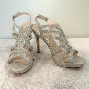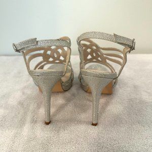 David's Bridal Silver Platform Strappy Heels, Size 8.5