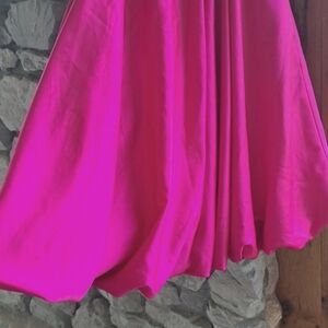New without tags. Color Begonia. Bubble bottom, flowy, full skirt, sleeveless, rose detail in the front, long, midi, 37" long. 14.5" chest. Very pretty!!