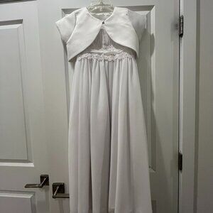 David's Bridal Spaghetti Strap Chiffon Baby Doll Flower Girl Dress Size 8 with Small Jacket Size 10