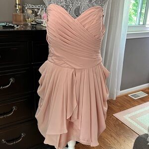 David’s Bridal Strapless Blush Pink Chiffon Pleated Cocktail Dress XL (EUC)
