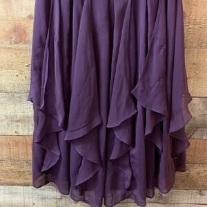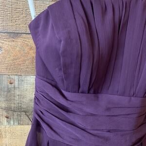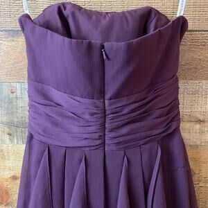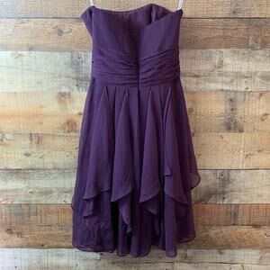 David's Bridal Strapless Chiffon Dress with Layered Skirt. Style# F14169. Size 2. Color ~ Lapis Purple. This dress features flowing cascades which create a soft and romantic silhouette. Pleated bodice adds dimension and flatters all figures. Excellent condition. Measurements are in the pictures.