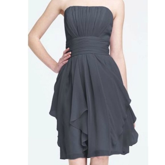 David's Bridal Strapless Chiffon Dress with Layered Skirt, Size 8