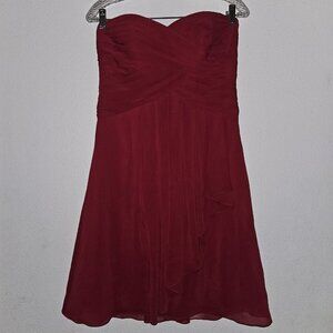 David's Bridal Strapless Red Dress Short Lined Size 6 Formal Bridesmaid Prom