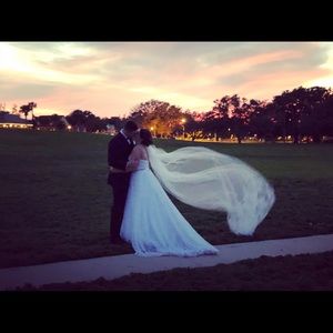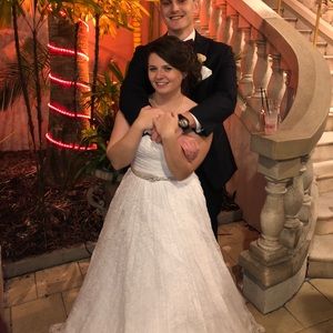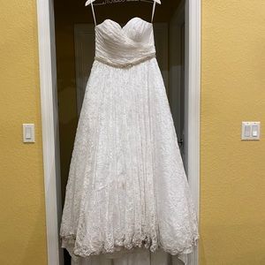 This is a size 12 wedding dress that fits more like a 10. No bad juju, we’re still happily married, just making room in our closet for a new baby.