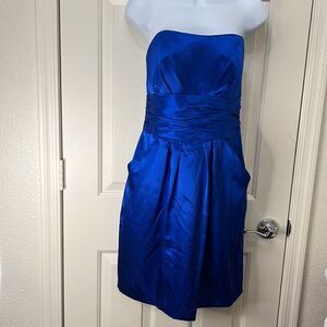 David’s Bridal Sz 8 Cobalt Blue Mini Prom Evening Formal Dress Pockets Strapless