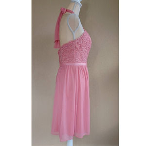David's Bridal Tie Neck Halter Floral Lace Mini Bridesmaid Dress Parfait Pink 8