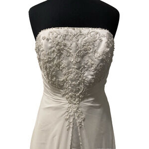 David's Bridal Wedding Dress Womens 12 Strapless Beaded Tiered Ball Gown w Train