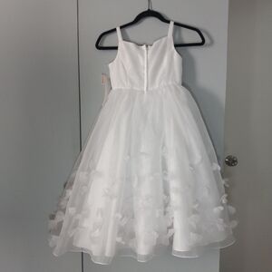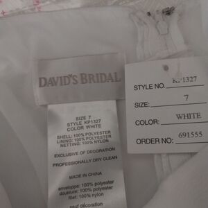 David's Bridal White Floral Girl, Communion, Party, Formal Dress Size 7 NWT