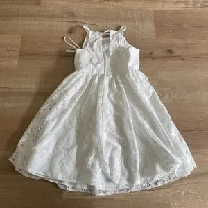 David’s Bridal White Illusion Lace Tie Back Halter Flower Girl Dress, 8