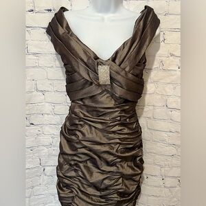 Davids Bridal Women"s BodyCon Off Shoulder Gray Rouched Jeweled Dress Size 6