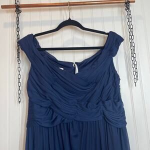 David’s Bridal Women’s Navy Blue Pleated Gathered Maxi Bridesmaid Dress Size 16
