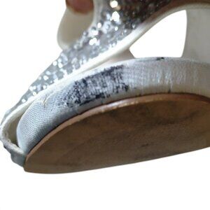 David's Bridal Women's Size 8 Nelia White Beaded Bling Zip Back Open Toe Sandals