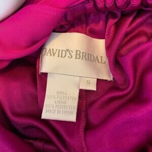 This David's Bridal women's dress is a sleeveless knee-length formal dress in a lovely pink color. It features a high neckline with a keyhole detail and a beaded open back for an elegant touch. Made of polyester and tulle fabric, this fit & flare dress is perfect for weddings, parties, or formal events. The dress is a size small and lined for added comfort, making it suitable for summer, fall, and spring seasons.