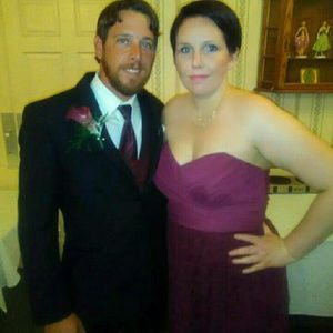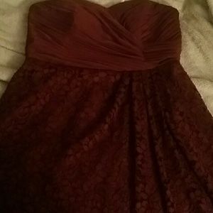 David's Bridal bridesmaid dress in the color wine