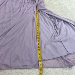 Lavender maxi dress in a one shoulder cut, with lace bust, ribbon waist, and chiffon drape skirt. Back zip closure, with corset stays around upper. No stretch and no pockets. Bridesmaid, mother of bride, STYLE: POUS0001051357 F17063 Iris