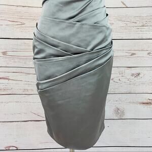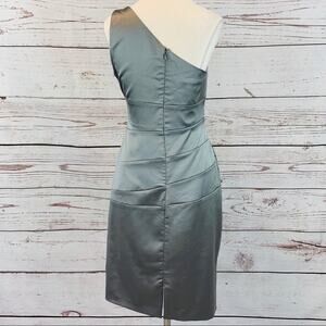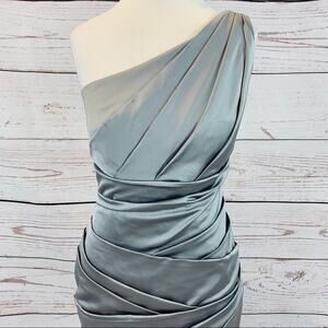 David’s Bridal single shoulder silver grey ruched
