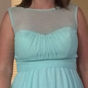 Style F15701. On sale for $109.95 right now online. This one has been worn once and no alterations! Size 6 "Mint" color. Short knee length.
