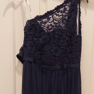 Hello! I have a David's Bridal Navy blue (They call it Marine) one shoulder lace long dress for sale.