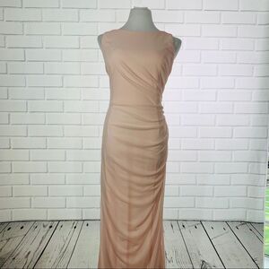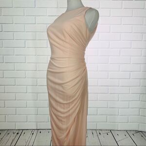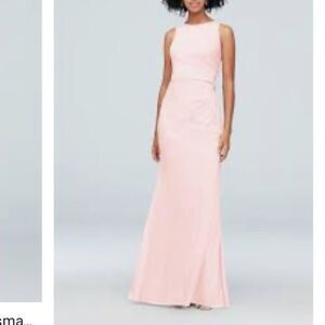 David's Bridal F19946 Petal High-Neck Ruched Mesh Bridesmaid Dress - Size 14. Perfect for only worn once. Measurements are shown in the 12th - 15th photos.