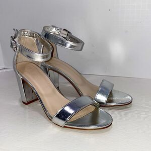 David's Bridal Metallic Silver Block Heel Ankle Strap Heels Size 7.5