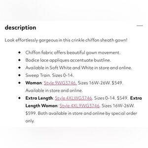 David’s Bridal Wedding Dress Womens Sz 8 strapless crinkle lace chiffon Princess